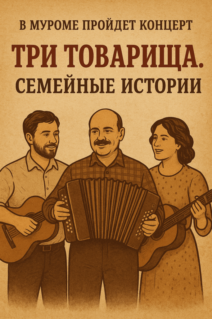 В сентябре-октябре 2025 года в нашем регионе пройдет целая серия концертов, в которых прозвучат известные и не очень песни троих поэтов-песенников: Алексея Фатьянова, Василия Соловьева-Седого и Бориса Мокроусова. Проект под названием «Три товарища. Семейные истории» (6+) реализуется с использованием гранта, предоставленного ООГО «Российский фонд культуры» в рамках федерального проекта «Семейные ценности и инфраструктура культуры» национального проекта «Семья».
