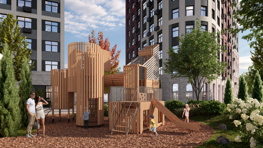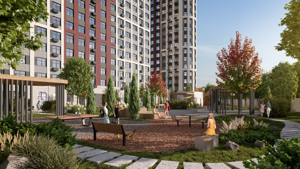 Проектированием квартала занимались специалисты столичного архитектурного бюро, поэтому принцип организации территории, получился максимально продуманным. И большое внимание было уделено придомовой территории. Не менее 50% территории во дворах домов будет отдано под озеленение, а центральным элементом квартала станет собственный Центральный парк, в котором озеленение будет осуществляться в концепции «4 сезона».